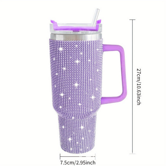 AmethystGlow Purple Rhinestone Tumbler with Handle